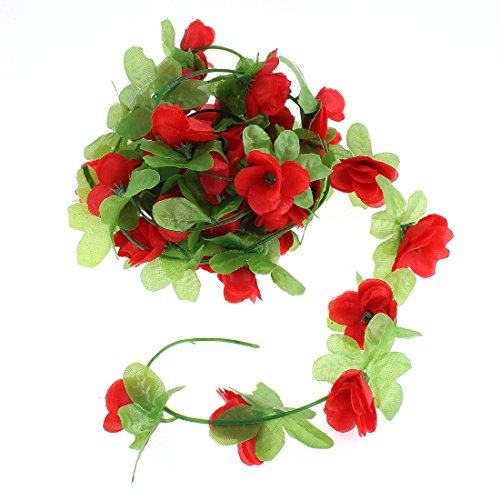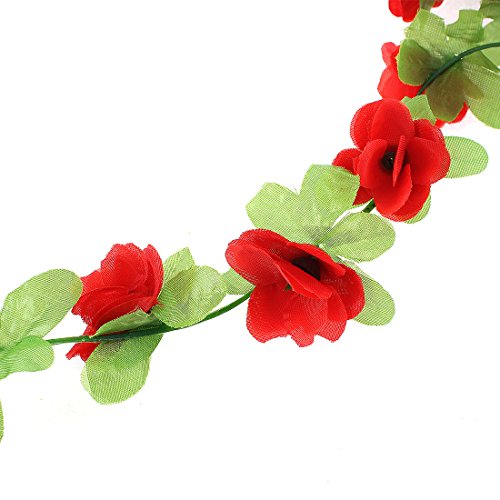 uxcell Artificial Fake Rose Flower Ivy Vine Hanging Garland Red