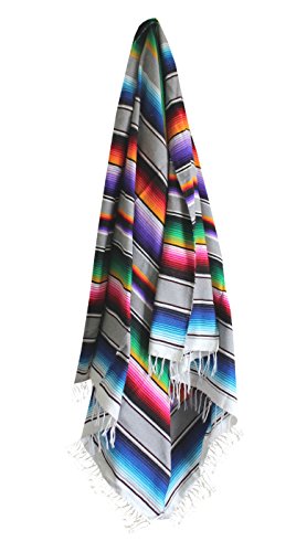 Authentic woven Mexican serape blankets. Assorted sizes and colors available. These blankets made great décor for fiesta or Cinco de Mayo parties or events. They are made of fine woven acrylic and are machine washable. Bright colors and high quality direct from Mexico. Due to hand made nature of these blankets, colors may vary slightly from those pictured, however, main color will be the same. Measurements of Sizes are: X-large (82" by 62), Large (78" by 48") Medium (72" by 36") Small (56" by 24") and X-Small (40" by 20")Feature