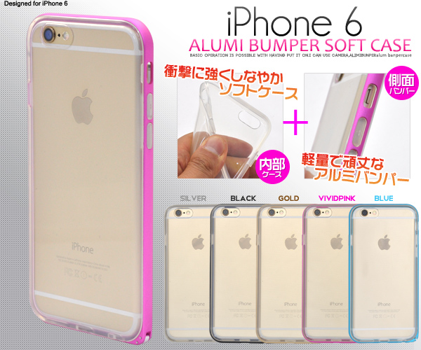 iPhone 6用アルミバンパーソフトケース