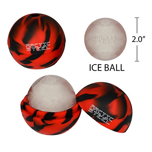 Premium Ice Ball Mold | Makes Large Single Slow Melting 2.5" Spherical Ice Balls | Flexible Red & Black Marble Swirled Silicone | Reusable, Dishwasher Safe, 100% BPA-Free | 2-Pack