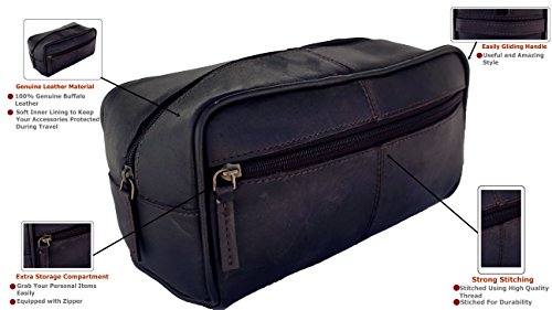 SIMPLICITY IS THE ULTIMATE SOPHISTICATION - A premium quality genuine leather - durable & versatile toiletry bag that lets you organize & pack your toiletries. Modern materials - heavy duty hardware - heavier stitching all ensure your dopp kit can stand the tests of time and the rigors of travelling