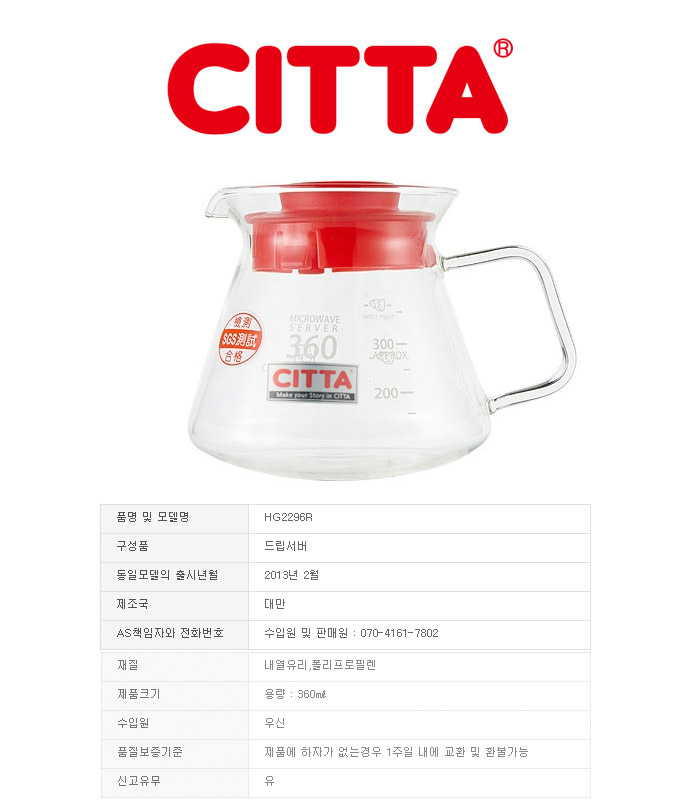 Sita Glass Drip Server 360ml HG2296R Red Hand Drip