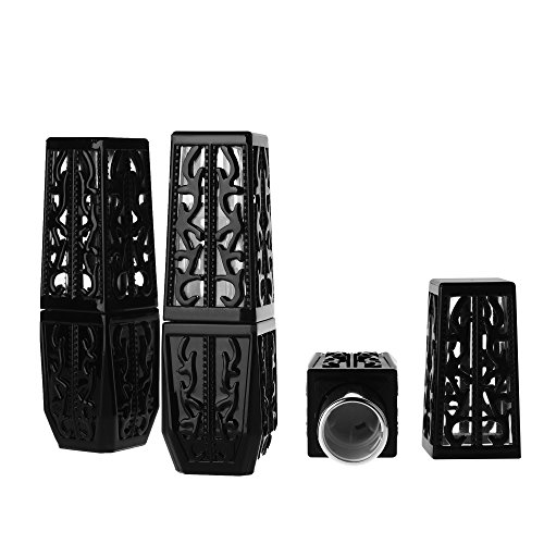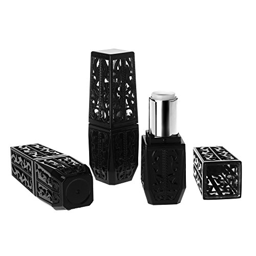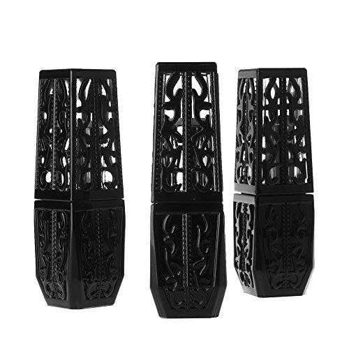 Kloud City Pack of 3 Retro Slant Hollow out Design Black Plastic Makeup Cosmetic DIY Lipsticks Lip Balm Empty Container Square Tube with Lid