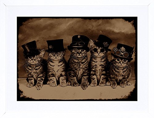 -. Title : PAINTING DIGITAL DAWN FIELDING SEPIA STEAMPUNK KITTENS FRAMED P.R.INT F12X8094