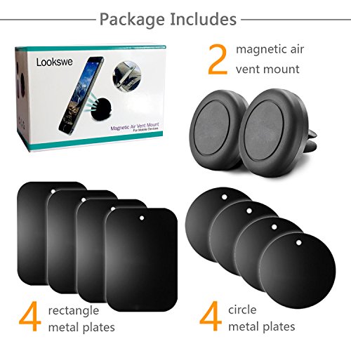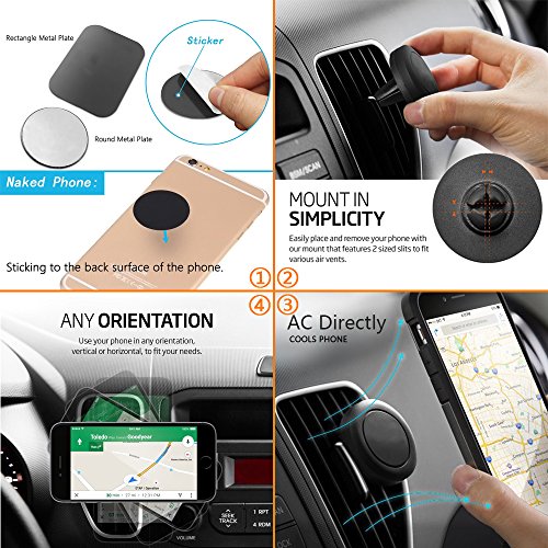Car Mount 2 Pack Magnetic Air Vent Car Holder for iPhone 7 Plus 6 Samsung Galaxy S7 Note iPad iPod GPS Smartphones Black