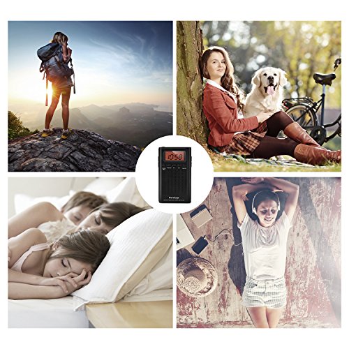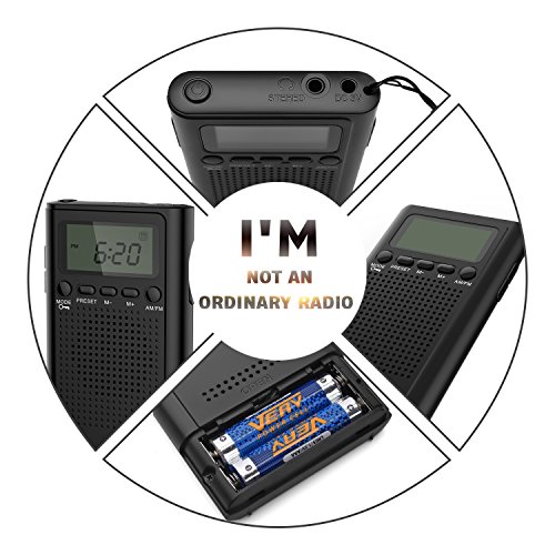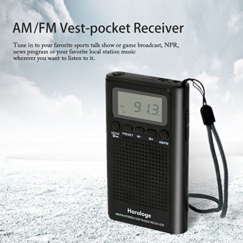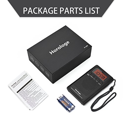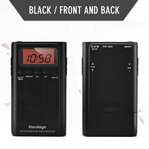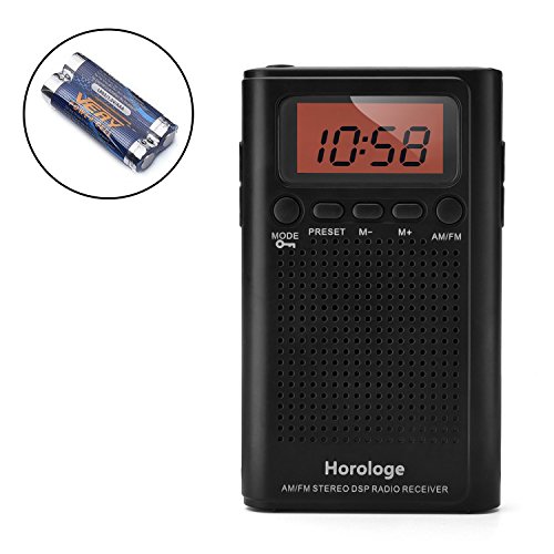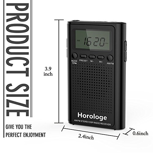 Horologe AM FM Pocket Radio, Portable Alarm Clock Radio with Time, Alarm, Radio, Digital Display,Stereo Mode and Including Battery