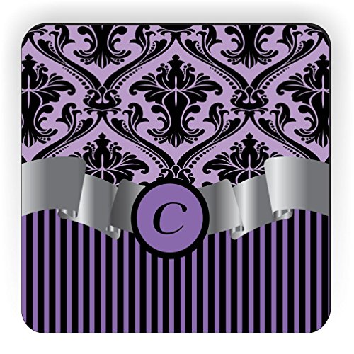Rikki Knight Letter "C" Initial Purple Damask and Stripes Monogrammed Design Square Fridge Magnet