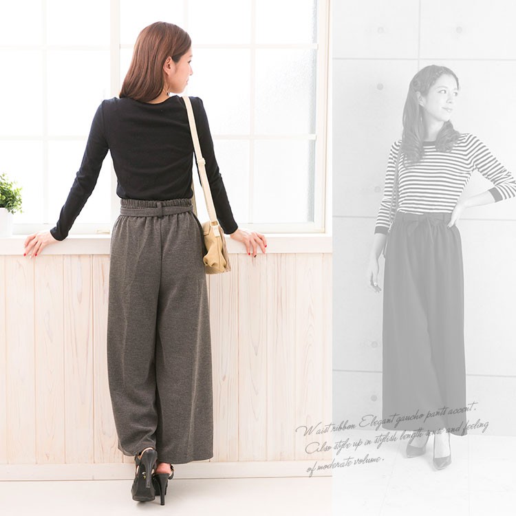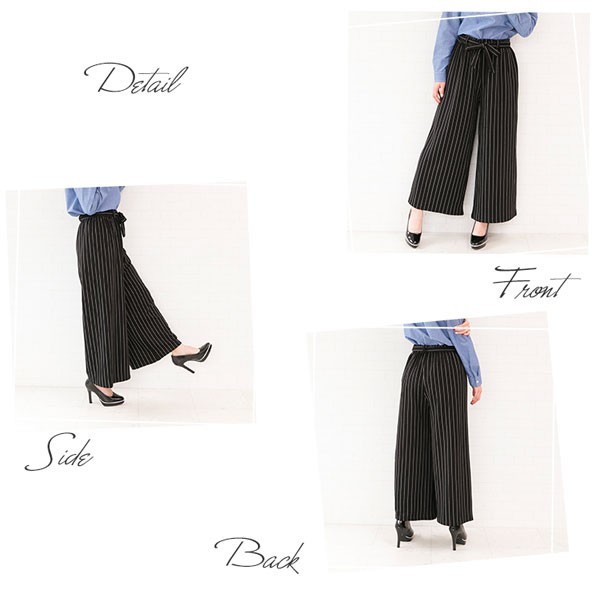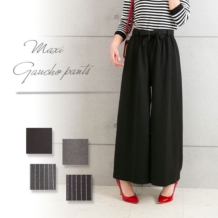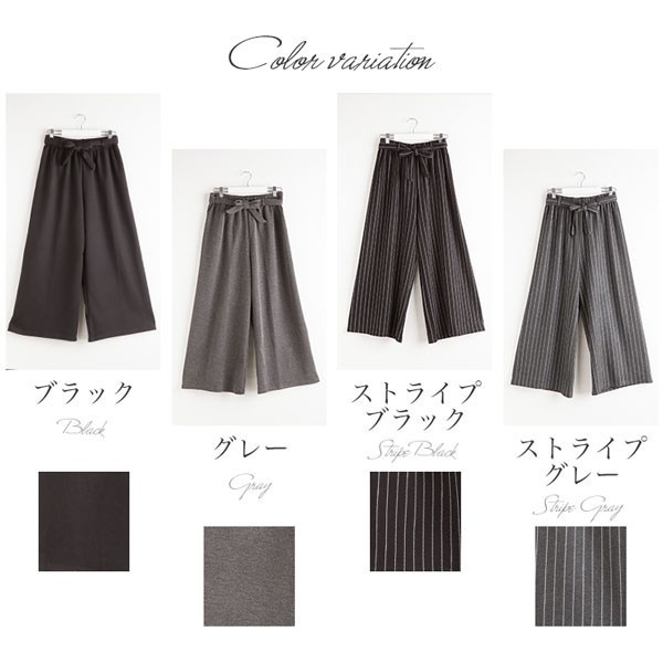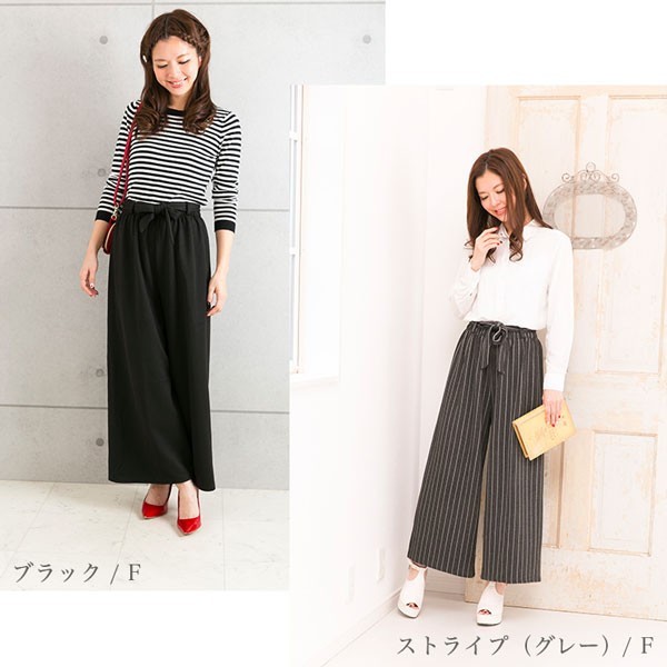 | 商品名 | マキシ丈 ストライプ柄 無地 リボン付き ワイドパンツ ガウチョパンツ |