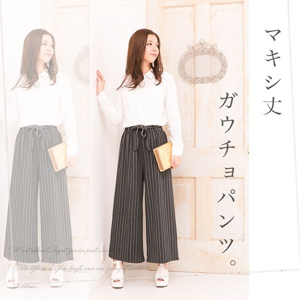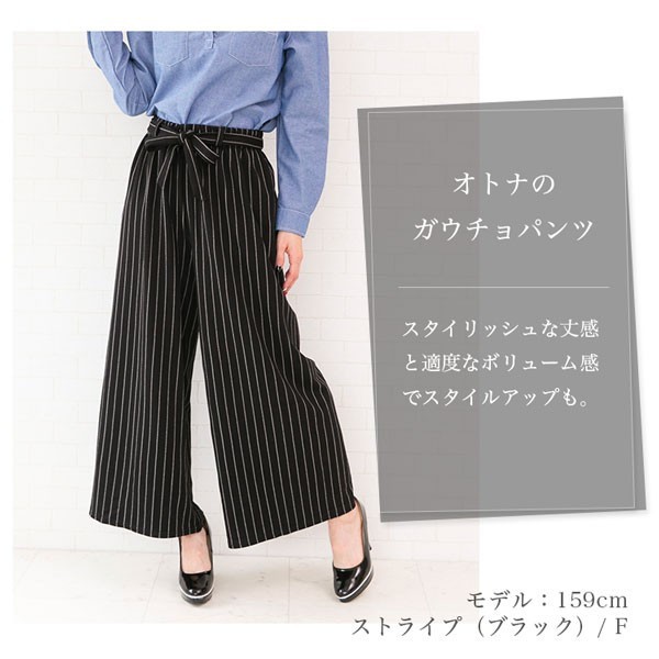 | 商品説明 | マキシ丈 ストライプ柄 無地 リボン付き ワイドパンツ ガウチョパンツ♪ ウエストリボンがアクセントのエレガントなガウチョパンツです。 スタイリッシュな丈感と適度なボリューム感でスタイルアップも♪ |