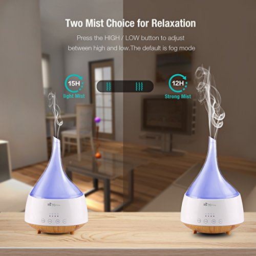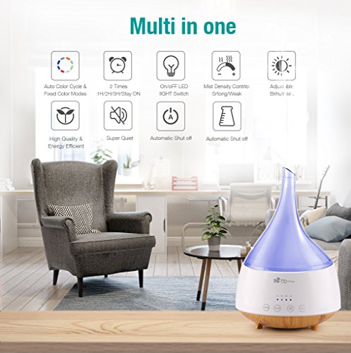 - 【Auto Shut-off & Adjustable Time Setting】- The aromatherapy diffuser humidifier will shut off automatically if runs out water after 5 seconds, risk free for your kids and family. 4 time setting modes:1 hour/2 hours/3 hours/steady on.