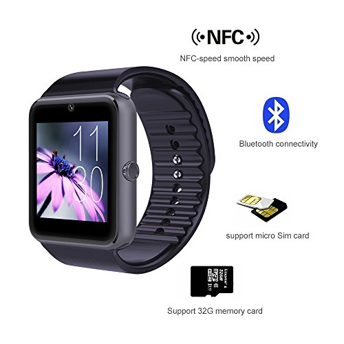Luxsure® NFC Bluetooth V3.0 SmartWatch With Sim Card For Apple iphone Samsung Android Smartphone Specifications Size: 41x48x12mm