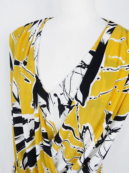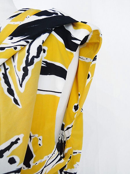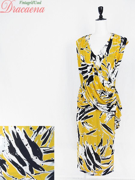 Ladies ブランド- カラー黄・白・黒 メール便不可 コンディション★★★ 素材記載なし 表記サイズ記載なし スタッフコメント裏地なし、透け感あり。 実寸サイズ 着丈 115 cm 身幅 46 cm 肩幅 44 cm ウエスト 28 インチ( 72 cm) スリット 22 cm ※ウエスト・ヒップ以外は平置き採寸