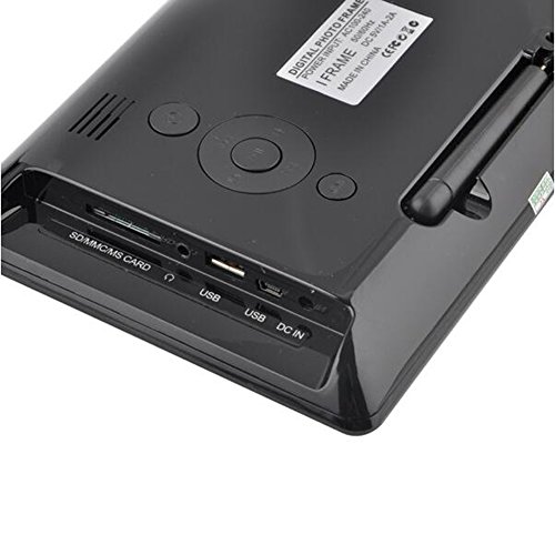 -. Feature : Electricity powered (plug is included) / High resolution, with LED Backlit Display / Compatible with(maximally supports 32GB): SD, microSD, MMC, MS, USB / Controller: Remote & buttons on machine / Other functions: clock, canlendar, timing fuction, music/video player