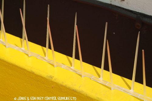 -. Title : Defender Plastic Pigeon and Bird Spikes 100 feet with Adhesive Glue. Humane Polycarbonate Anti Bird Repellent and Pigeon Deterrent