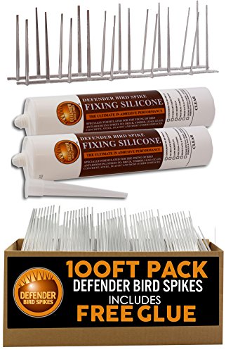 -. Feature : 100 ft Pack of Defender Plastic Bird Spike and Pigeon Spikes (90 Strips x 13.24 Inches) / FREE Defender Silicone Adhesive Spike Fixing Glues with every order for easy installation / 15 Year Warranty covers the UV stabilised plastic bird spikes designed to withstand ALL weather / Easy Defender Pigeon Spike installation, simply snap to size and silicone, screw or zip tie down / Defender Bird Spikes prevent birds & pigeons nesting, perching or roosting on all ledges