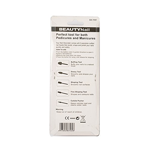 Your nail decorators comes with 5 precision crafted nail heads that sculpt, shape and polish your nails quickly and safely.