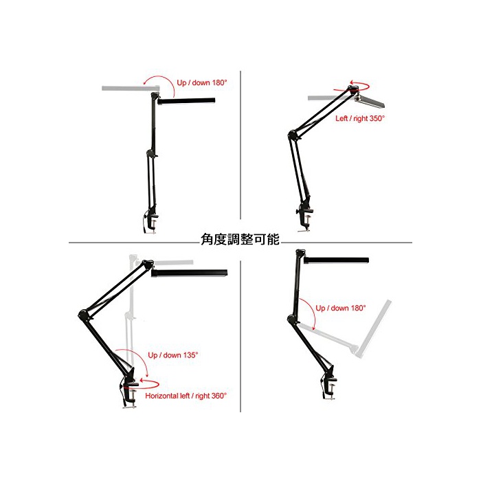 【각도 조정 가능】클램프에 고정 하면,좋아하는 각도로 설치에 옵니다.라이트부는 상하180°각도,좌우360°각도를 조정에 옵니다.암부는 뻗음(늘어남,펴짐) 줄어드는 것 성과,접는 것 를 할 수 있습니다.