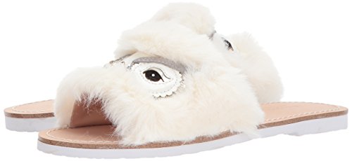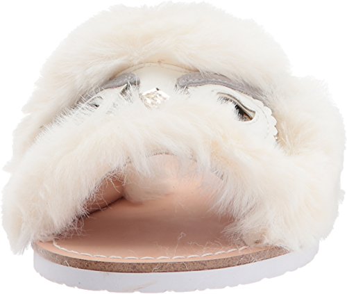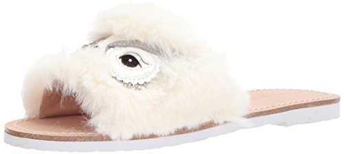 Product DescriptionA cute slide sandal with faux fur upper and glittered owl-eye ornament0