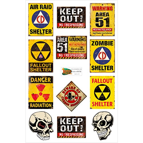 Area 51 Fallout Shelter Warning Signs Vinyl Sticker Sheet of 12