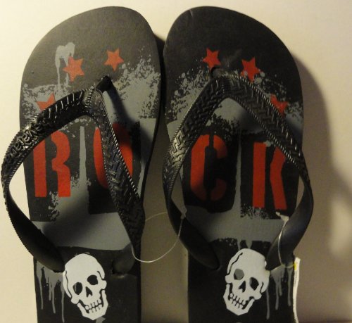 -. Title : Rock Flip Flps with a Skull - Size 1 Youth