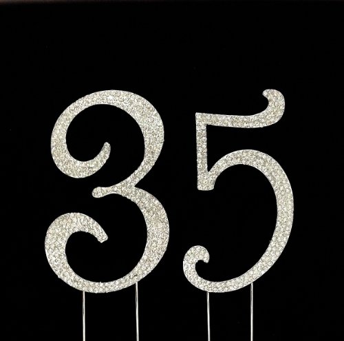 Large 35th Birthday / Wedding Anniversary Number Cake Topper with Sparkling Rhinestone Crystals - 4 1/2