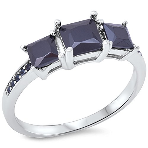 - Title : 3 Stone Princess Cut Simulated Black Onyx .925 Sterling Silver Ring size 8