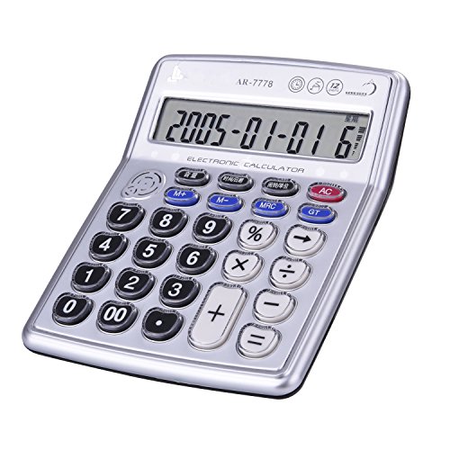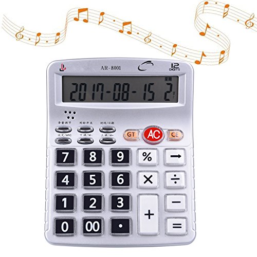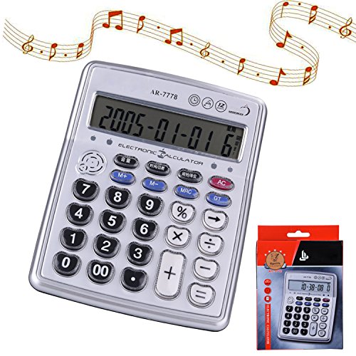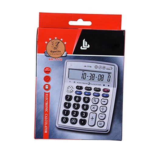 Egoelife Musical Desktop Calculator 12-Digits LCD Display with Alarm Clock and Voice Reading