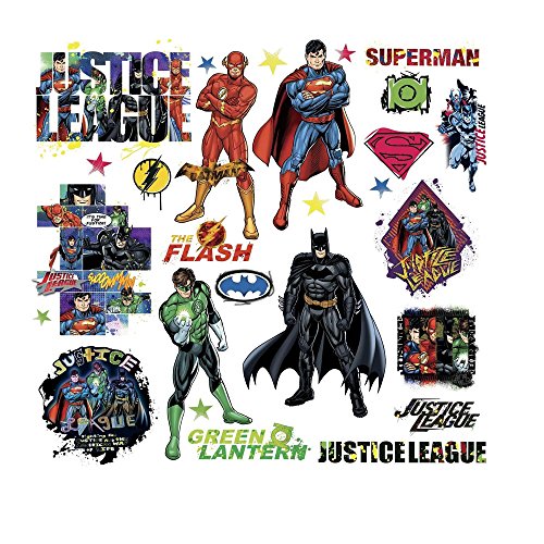 -. EAN : 0789099043098 -. Feature : Removable, repositionable peel and stick vinyl wall stickers room decor Decals Bedroom decorations / Dimensions: 4 sheets of 10" x 18" / decals range from 1.25" x 1.25" to 8.25" x 11.5" / Number of Wall Decals: 28 -. Label : na -. Manufacturer : na -. MPN : na -. PackageQuantity : 1 -. PartNumber : na -. ProductGroup : Home Improvement -. ProductTypeName : BUILDING_MATERIAL -. Publisher : na -. Studio : na -. Title : JUSTICE LEAGUE 28 Wall Decals Superman Batman Room Decor Stickers DC COMICS NEW -. UPC : 789099043098