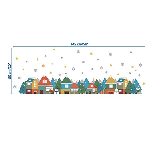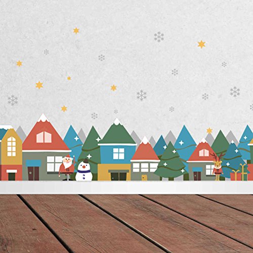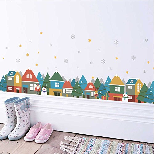 BIBITIME Skirting Border Vinyl Decal Christmas Village House Snowflake Snowman Santa Claus Wall Stickers for Living Room Baseboard Decor Kids Room Nursery Art Murals
