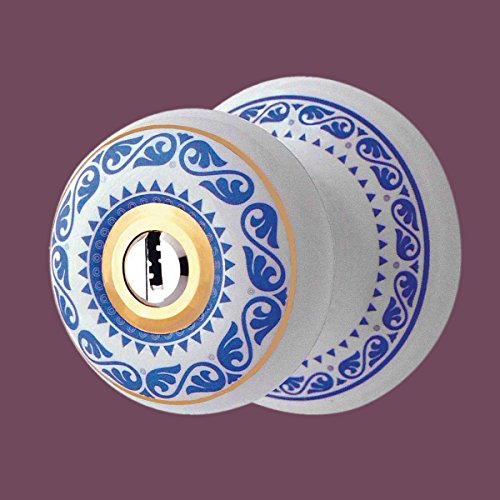 -. Feature : Porcelain locksets manufactured for security, knob dia. 2 3/8, backset 2 3/4 or 2 3/8 inch / Security - Crafted with a superior quality locking mechanism / Key sets are sturdy and manufactured for high security / Rose, latch and strike plate, mounting screws and 3 high-security proP.R.Ietary keys / 2 Knobs: Key-entry outdoor and turn button inside