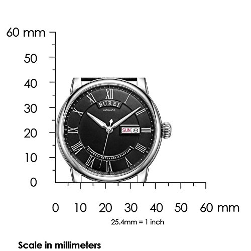-. Feature : Luxury men's watch design, with ultra-precise Japanese automatic movement; no battery needed, timepiece is powered by the natural movement of your arm. / Genuine calfskin strap w/ crocodile-pattern embossing; mineral glass, stainless steel scratch-resistant case, water-resistant to 50m (165ft) / GUARANTEE - 30 Day money back guarantee for any reason; 12 Month warranty for quality related issues; 24 Month warranty for quality issues / ABOUT BUREI - We design watches and sell them direct from our factory to you, without the heavy P.R.Ice tag, beating competitor's P.R.Ices daily. / Case diameter 42mm, band length 195mm, band width 20mm,weight 66g; Package includes Watch Box, Gift Bag, User Manual, and 2-year Warranty Card; additional colors and styles available from BUREI.