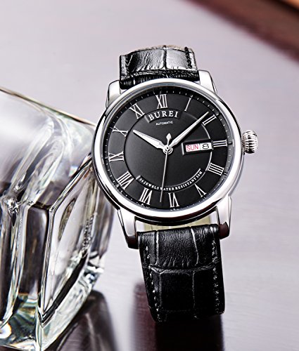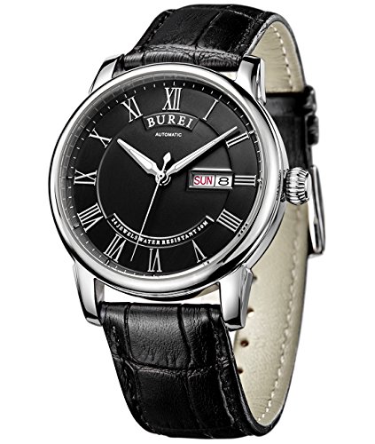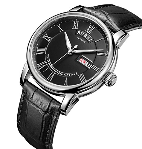 -. Title : BUREI Men's Day Date Automatic Wrist Watches Timepieces with Black Leather Strap