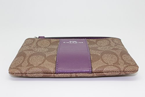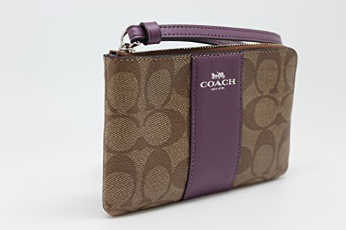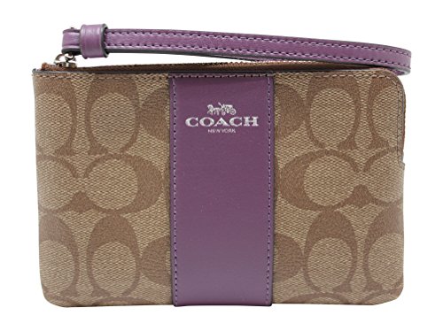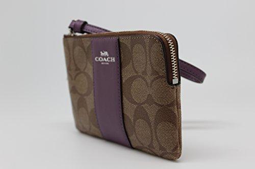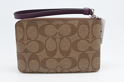 COACH F58035 CORNER ZIP WRISTLET IN SIGNATURE KHAKI BERRY