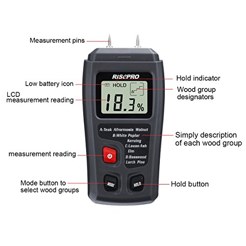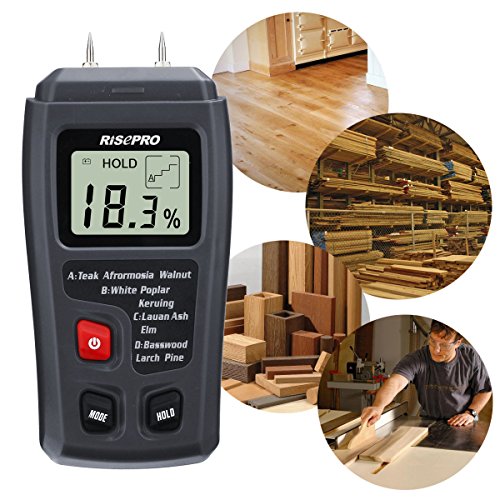 Wood Moisture Meter, RISEPRO Digital Moisture Meter 2 pins Wood Moisture Tester Water Content MT-10