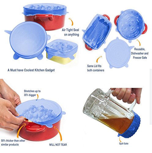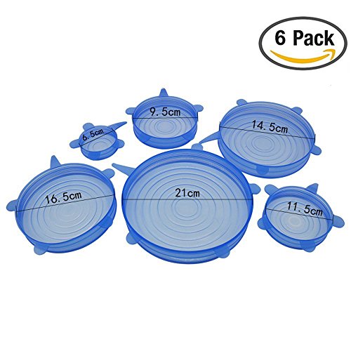 Silicone Stretch Lids ,6 PACK of VARIOUS SIZES ,flexible Food Saving Lids,Fresh reusable and Durable food cover,food storage(Blue)