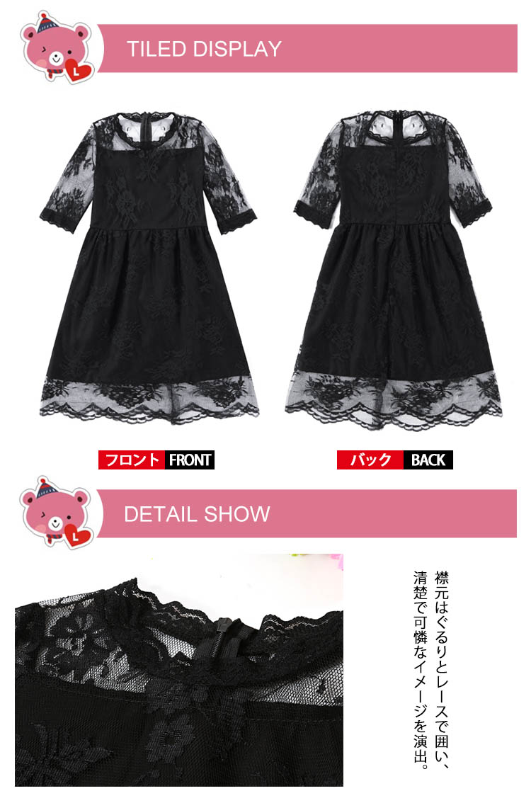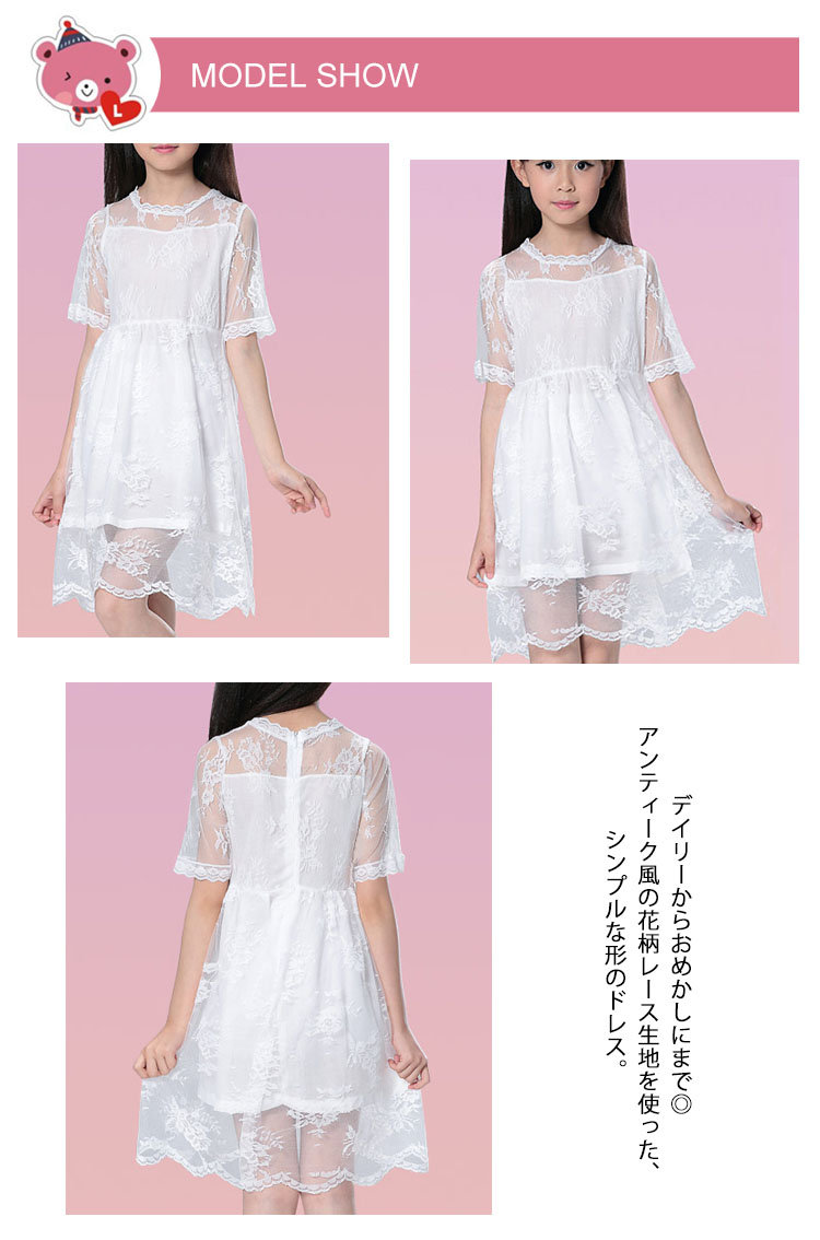 | デイリーからおめかしにまで◎アンティーク風の花柄レース生地を使った、シンプルな形のドレス。裾はシンプルながら、レースの透明感が際立つようデザイン。裏地とレース生地の絶妙な丈バランスが、エレガントさを醸し出します。普段使いにはもちろん、ちょっとしたお呼ばれやフォーマルにも◎ | |