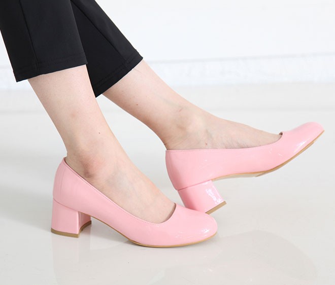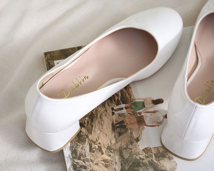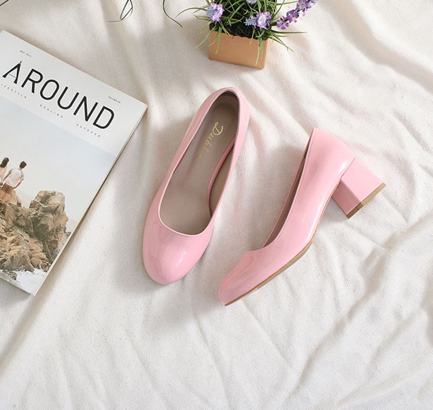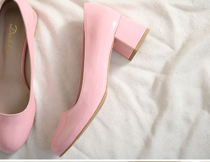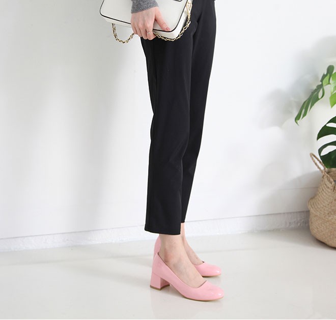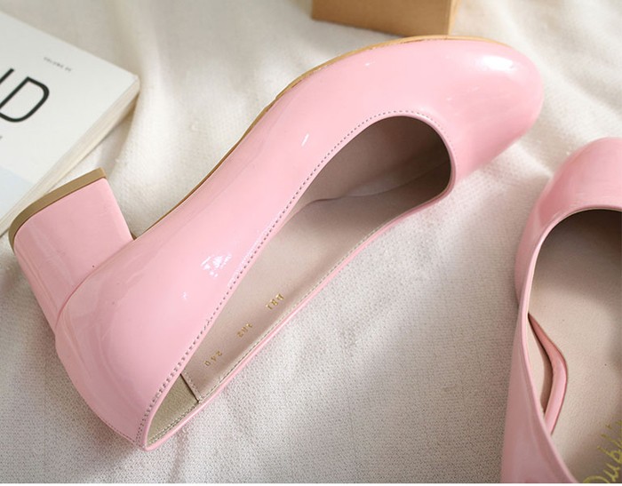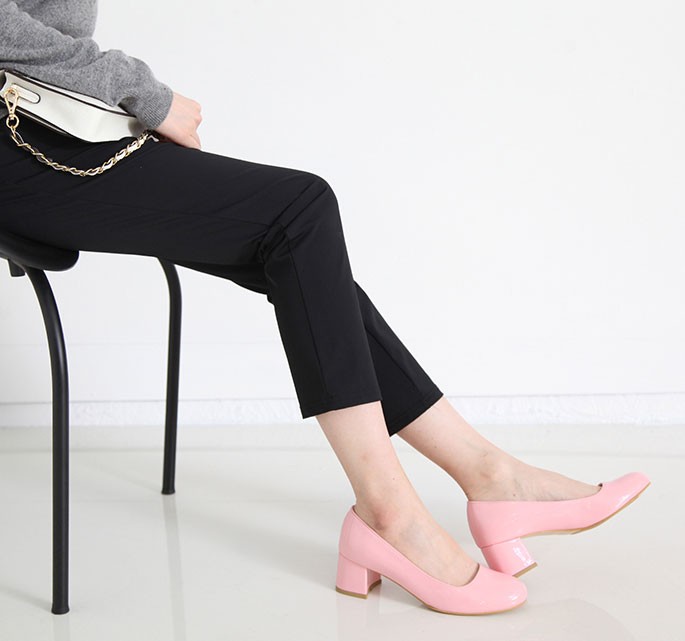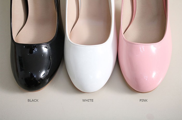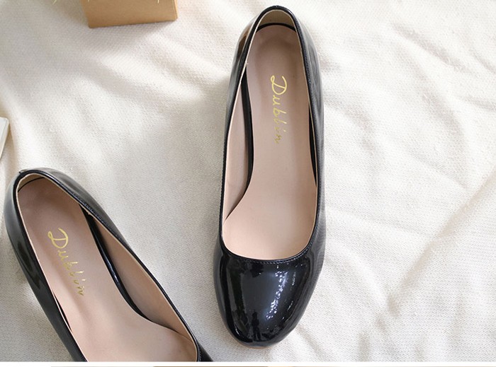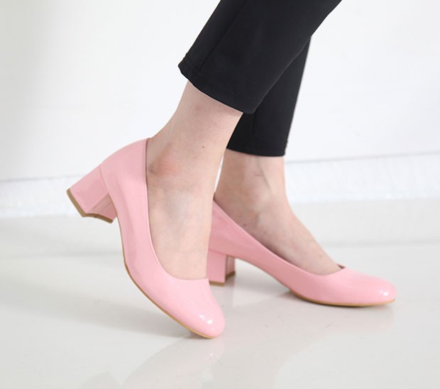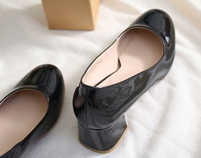 商品名:パンプス レディース 太ヒール エナメル調 チャンキーヒール 2017 秋 冬 ファッション 靴 婦人靴