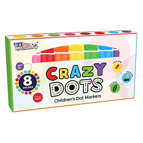 U.S. Art Supply 8 Color Crazy Dots Markers - Children's Washable Easy Grip Non-Toxic Paint Marker Daubers