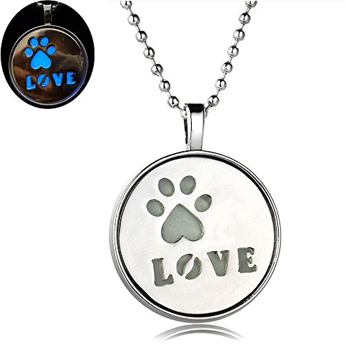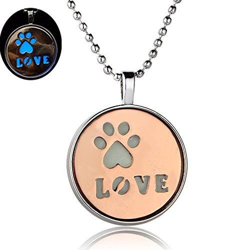 -. Title : Linsh Womens Girls Cute Paw P.R.Int Love Pendant Necklace Glow in The Dark Jewelry