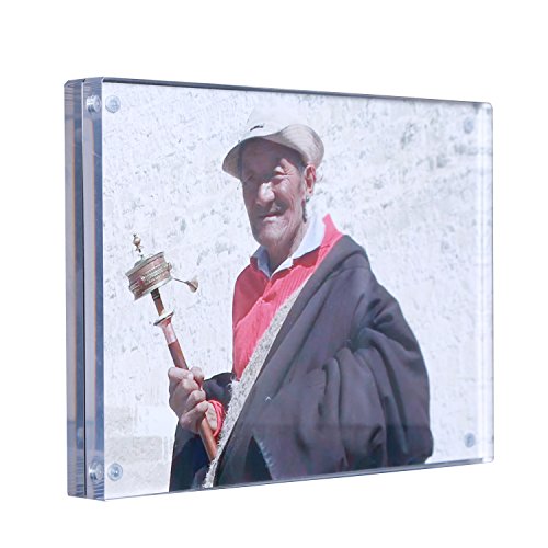 3)Thick, Solid and Super Clear:With a nearly 1 inch thick (0.95 inch / 24 mm) frame, 20% thicker than some other frames, we designed the frame to be solid and stable in both portrait and landscape orientation. And we used four small and strong magnets to securely hold the super-clear acrylic blocks together. And this particular material allows you to clean up the frame easily.