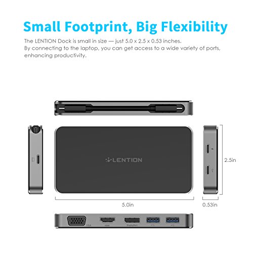 -. Title : LENTION USB-C Digital AV Portable Docking Station with 2-Port USB 3.0, HDMI, DisplayPort, VGA, Type C Data & Charging Adapter for 2016 2017 MacBook Pro 13 15, MacBook 12, Dell XPS, More (Black)