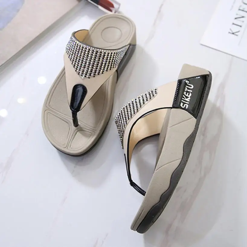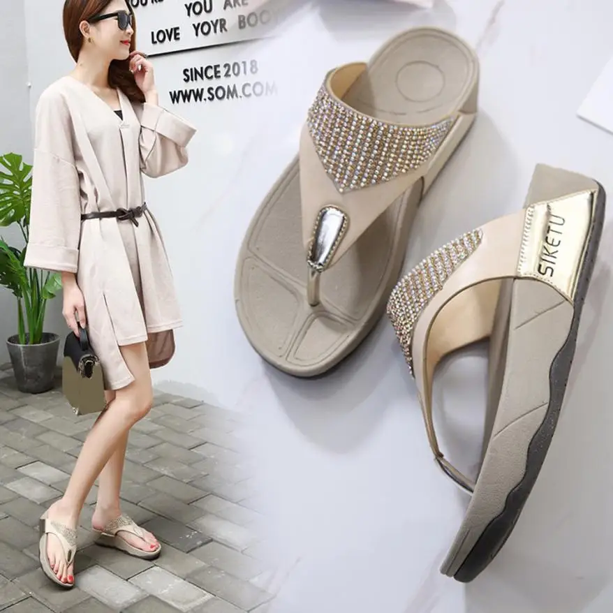 beach flip flops on a wedge:summer women wedge sandals flip flops