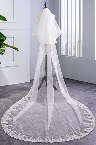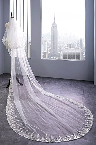 (Pretydress)/Accessories/Scarves/DIRECT FROM USA/Pretydress Women's Custom Made Sequins Lace Chapel Wedding Bridal Veil With Free Comb