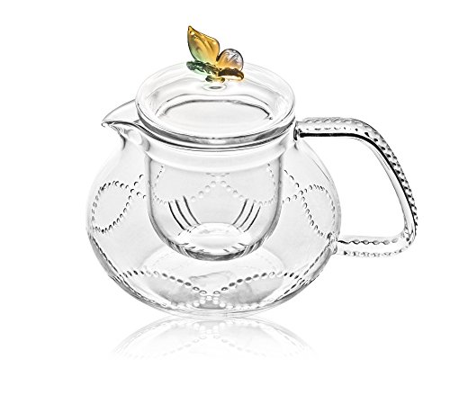- Feature : This teapot has a stunning beautiful rainbow butterfly on top. it symbolizes changes for a better life / heat resistant glass-better for health and environment. Non dripping at the spout. / handle has special feature to allow better grab: anti-slip feature / The water wave crystal like dots represents tea drops. / dishwasher top rack safe. handle with care.