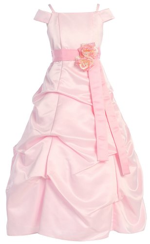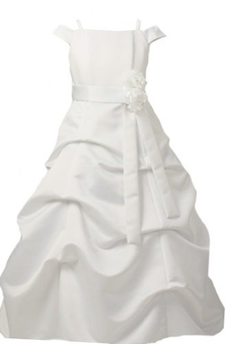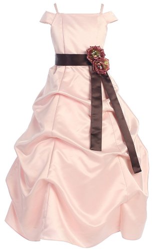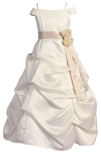 Stunning New Regal Puff Style Dress with a Wonderful Mock Off-Shoulder Design. This Luscious Matte Satin Dress has a Contrasting Detached Sash Waist Band with Pin-on Flower Corsage Bow. Satin Pick Up Skirt Creates a Unique Puffed Effect. 70% Polyester 30% Acetate; Hand Wash; Made in USAFeature
