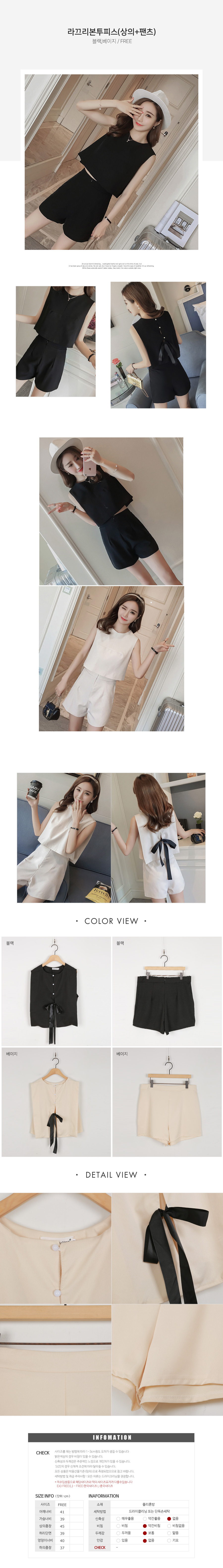민소매 블라우스와 숏팬츠의 세트로 활용도가 높답니다