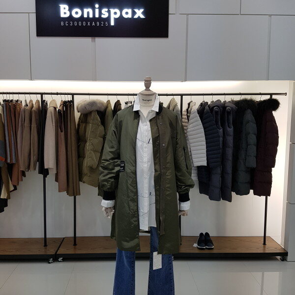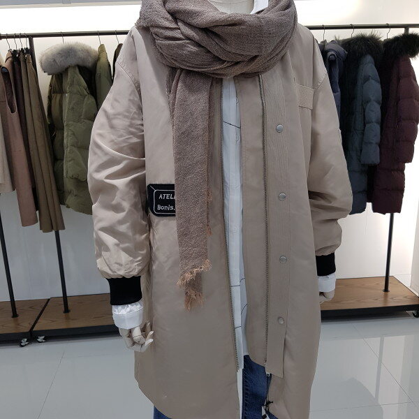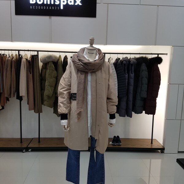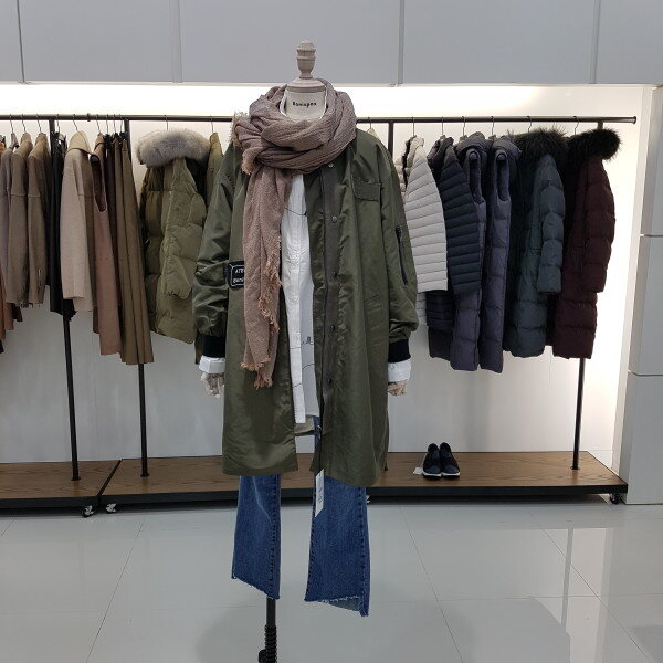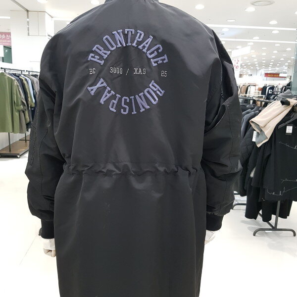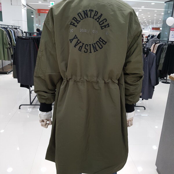 폴리혼방소재의 야상점퍼 스타일로 허리안쪽에 셔링처리로 허리포인트를 줄수있으며 등쪽에 로고문양이 캐쥬얼함이 돋보이는디자인 입니다