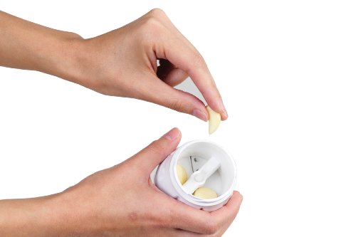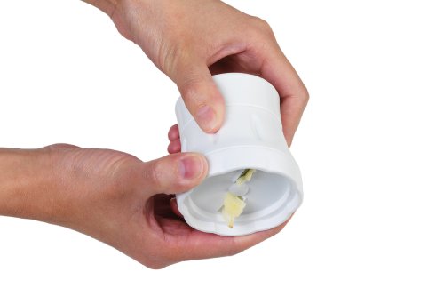 This garlic slicer's stainless steel blades thinly slices garlic without the need of a knife or cutting board. Simply fill the device with garlic cloves, twist, and slice for perfect garlic for sauces, soups, chili, and more.