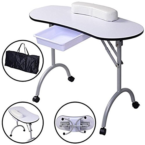 Product Description This Is Our Brand New And Portable Nail Care Desk Manicure Table Which Is Foldable And Comes With A Sturdy Carrying Bag For Storage. Equipped With 4 PVC Lockable Rolling Wheels, This Table Is Designed For Easy Movement. And The Durable Plastic Drawer Is Perfect For Your Accessories. Don't Hesitate To Buy One Now! 0