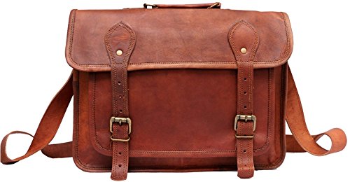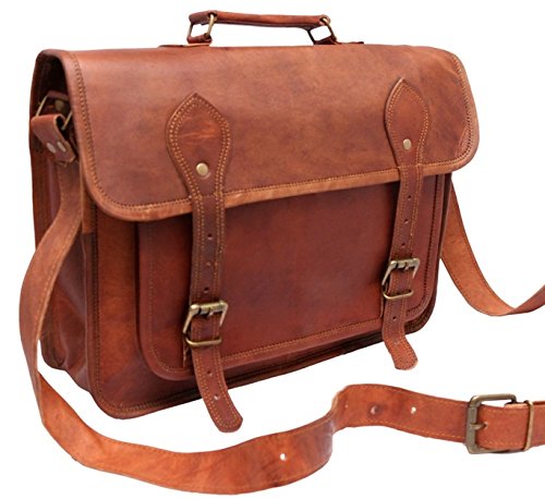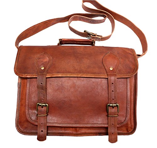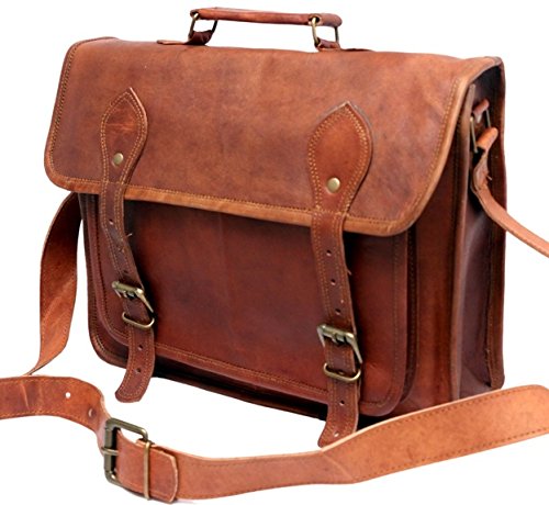 -. Feature : New genuine leather laptop bag handcrafted with vintage style / 1 front big pocket,Padded removable sleeve / Dimensions: 15 inches (length), 11 inches (height), 4 inches (depth) / Strong & durable brass fittings & buckles, quality zippers, heavy duty lining / Adjustable shoulder strap. Enough for Crossbody